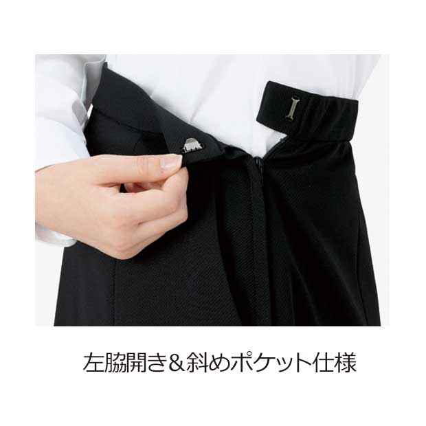 着脱しやすい左脇ファスナー開きのセミタイトスカートです。